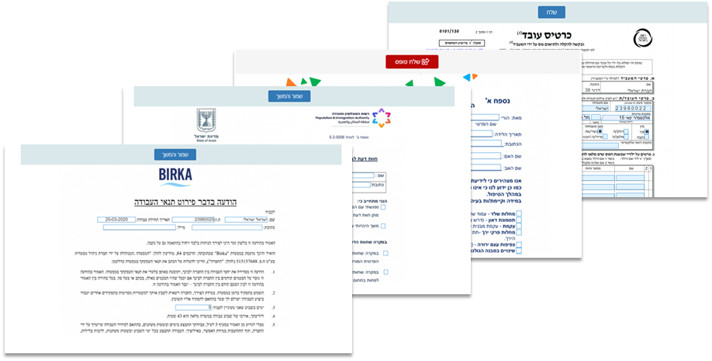 טפסי 101, הסכמי עבודה, אישור נהלי עבודה, שאלונים, טפסי הערכה, טפסי הצטרפות לביטוחים, טפסי פרטים אישיים ופרטי בנק, טפסי ביטוח לאומי או כל מסמך או טופס למילוי והחתמת העובדים.