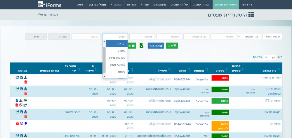 כל המידע מהטפסים ניתן לייצוא לאקסל